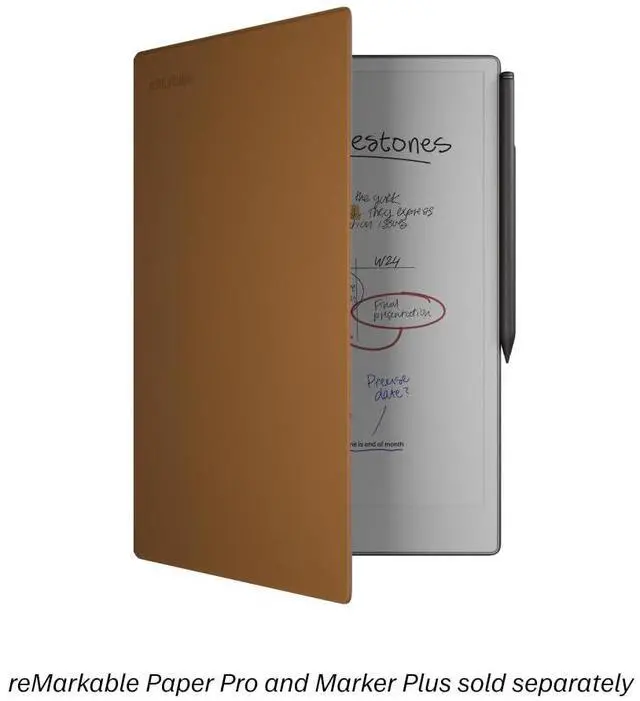 Premium and functional protection for your reMarkable Paper Pro. Book Folio is made from premium brown leather that's designed to fit your 11.8 '' Paper Pro perfectly, and the built-in magnets snap your paper tablet in place so you can keep it in its cover while you work.