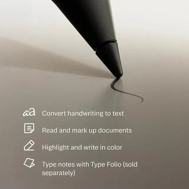 ^^ PAPER-LIKE WRITING Designed to work exclusively with the groundbreaking color display to deliver realistic friction and natural writing feel, the included Marker Plus offers precise control, incredible responsiveness, and all-day comfort. ^^ ALL YOUR WORK, ORGANIZED Sort your notes and documents with folders and tags, write directly on PDFs, and instantly convert handwriting to typed text. Everything's in one place and easy to find. ^^ READ IN COMFORT, DAY OR NIGHT Unlike most laptops and phones, reMarkable Paper Pro has a low-glare display that reflects natural light, so you can read without eye-strain, even outside.
