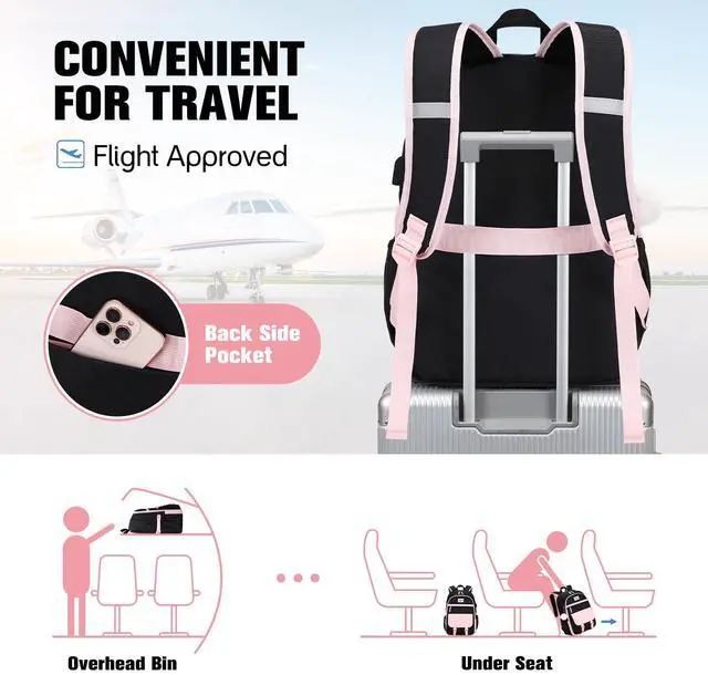 [(LARGE CAPACITY GIRLS BACKPACK)] Size: 12.6" x 8.2" x 17.7". This travel laptop backpack contains 2 main zipper compartments (Padded laptop compartment for up to 15.6" laptop), 1 inner zipper pocket, 2 inner slip pockets, 1 iPad compartment. Perfect for keeping your items organized like A4 folders and documents. Also includes 2 front zipper pockets, 1 anti-theft pocket, and 2 side pockets for umbrellas, cosmetics, tissues,water bottle, keep your items organized and easier to find.