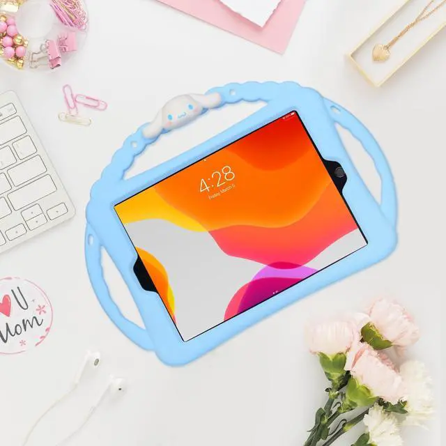 Carechoi for iPad 9th 8th 7th Generation Case, iPad 10.2 Case with Wallet, Kickstand, Shoulder Straps, 3 Handles, Cute Cartoon Silicone Tablet Cover Kids Girls Boys (Blue)