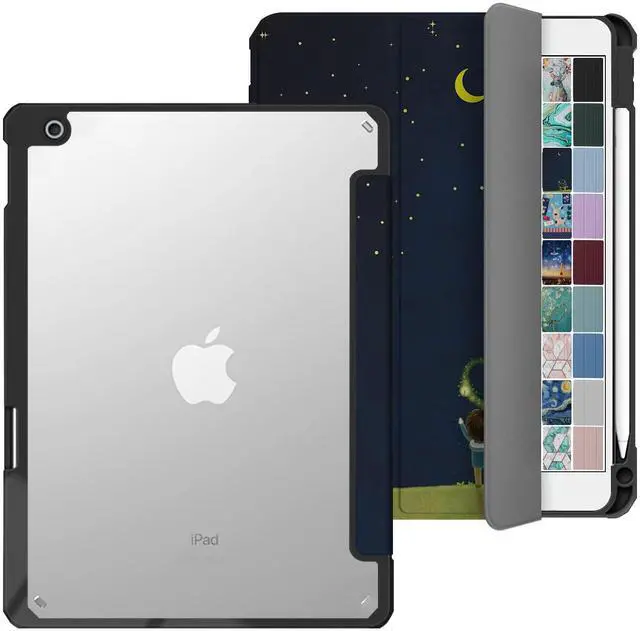 DuraSafe Cases for iPad 9th 2021 8th 2020 7th 2019 Gen [iPad 9 iPad 8 iPad 7 ] 10.2 Inch A2602 A2270 A2197 MK663LL/A Rugged Shell TPU Corner PC Transparent Back Case Pencil Holder - Night Sky Print