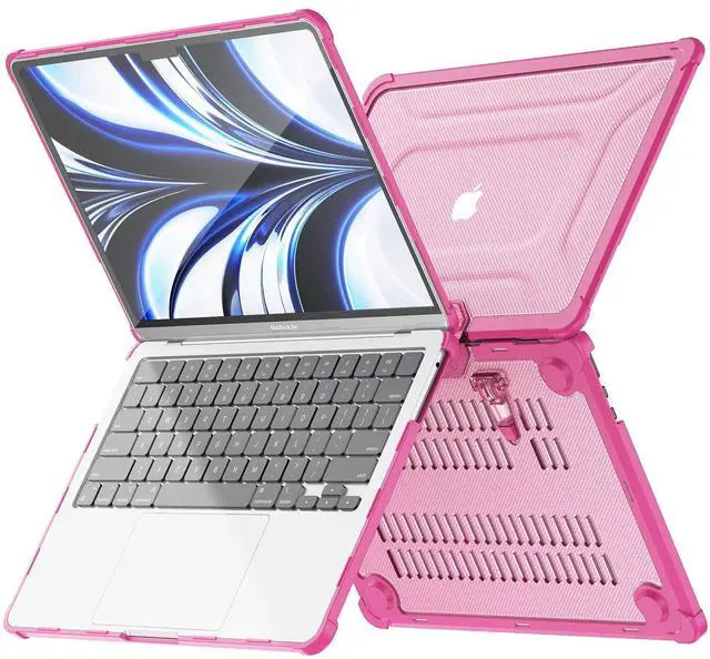 MEEgoodo Case for MacBook Air 13 inch 2021 2020 2019 2018 A2337 M1 A2179 A1932 with Heavy Duty Rugged Shockproof, Laptop Hard Shell Case with TPU Hard Frame & Fold Kickstand & Connection Design, Pink