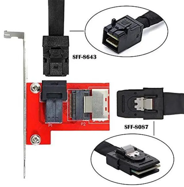 PCI-Express 4.0 Mini SAS SFF-8087 to SAS HD SFF-8643 PCBA Female Adapter With Bracket