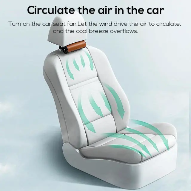 CAR HEADREST FAN: Through a lot of car seat research, it has a fashionable appearance and a more flattering seat design style, a perfect solution to other car fan problems, our powerful bladeless fan blows directly to your back and seat. Direct air circulation takes away body heat, sweat.