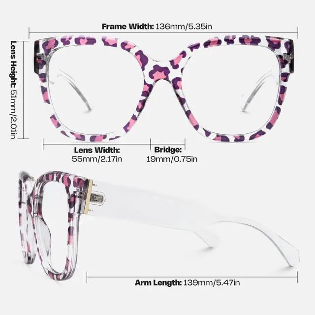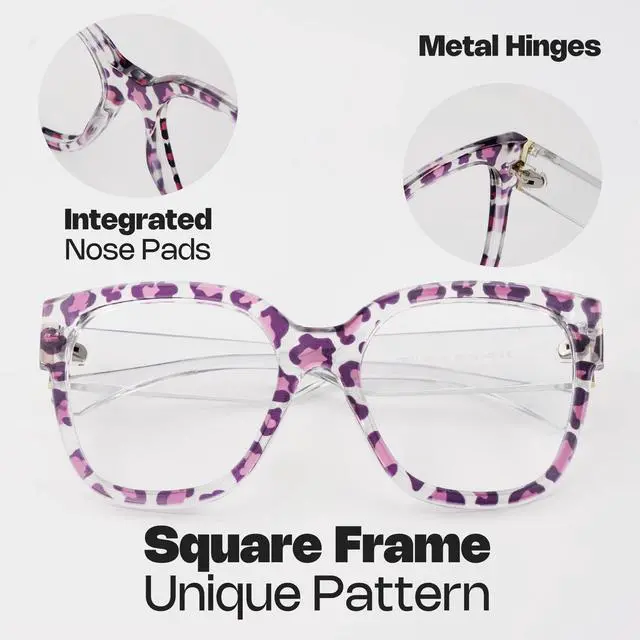 This chic pair of animal print color frame eyeglasses is designed with exquisite metal hinges, well-designed corners, wide temples and is highly versatile and comfortable.