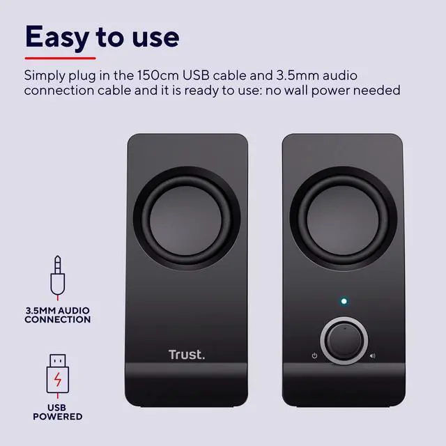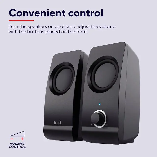 Trust Remo 2.0 PC Speakers, 16W (8W RMS), USB Powered, Jack 3.5mm, Stereo Speaker Set with Volume Control, Compact Sound System for Computer and Laptop - Black