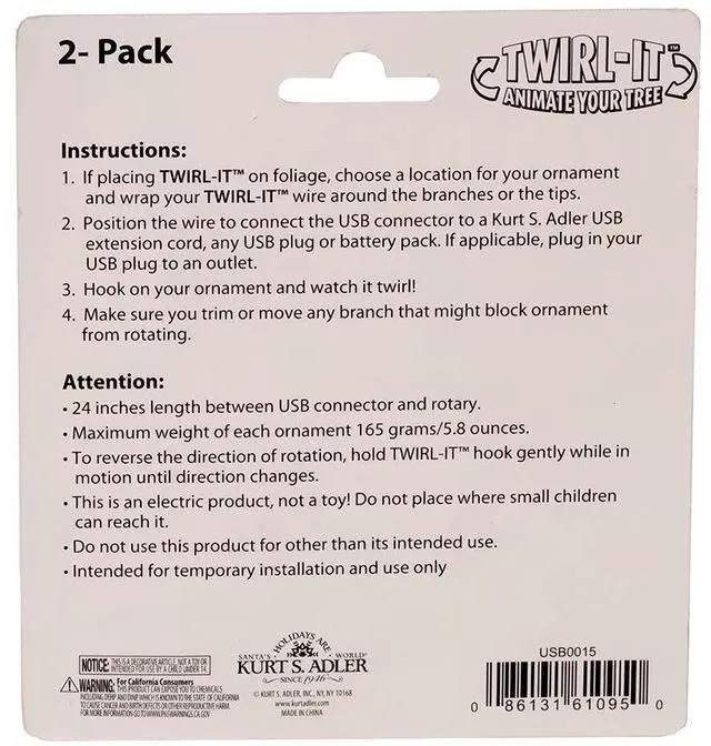 Kurt S. Adler USB 2 Pack Twirl-Its with DC Motor