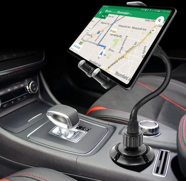cup holder mount is equipped with a heavy-duty adjustable base. Simply place the base into the cup holder, turn dial to extend wings to fit into cup holder if needed, then place your tablet onto the mount. ^^ Designed with non-slip holder grips/back to protect your device from any scratches and secures your device in place as you drive. ^^ provides a 360 degree rotation, which allows you to view your device in portrait or landscape mode. ^^ Flexible goose-neck allows you to position your tablet in any angle. ^^ Compatible with Apple iPad 12.9, Pro 11 (2018/2021), New iPad (2018), iPad Pro 12.9 (2017), iPad Mini 4, Samsung Galaxy Tab S7, S7 FE, S7+, Galaxy A7, A7 Lite, Tab S6 S5e, S4, Galaxy Tab S3, Micro Surface Pro and more tablets.
