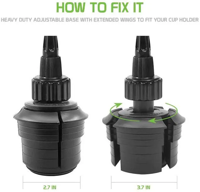 The Cellet iPad/tablet heavy duty cup holder mount holds your device steady as you drive. This tablet/iPad mount is quipped with a heavy duty adjustable base. To install, place the base into your cup holder. If needed, turn dial clockwise to extend winds to secure base into your cup holder. Once your base is secure, insert your device into the cradle. Cradle contains non-slip rubberized grips and backing to prevent and protect your device from any scratches and securely holds your device into place. Equipped with 360 degree rotation capability, position your device into any viewing position.
