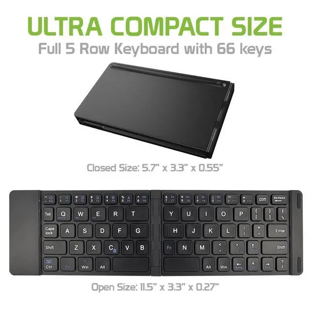 Combining convenience + functionality the Cellet Wireless Keyboard is the perfect accessory to compose correspondence with accuracy and ease The foldable keyboard contains QWERTY layout with dedicated functions and low profile keys provide effortless typing Built-in rechargeable lithium battery allows continuous use up to 85 hours and 120 days in standby mode User-friendly this keyboard is easy to pair to your smartphone tablet laptop computer or any other Wireless-enabled devices