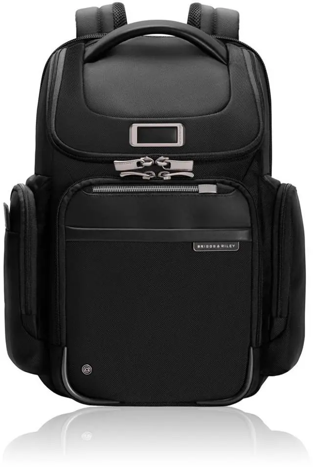 EVERYDAY BACKPACK - Whether for work or weekend travel, this medium widemouth backpack offers quick access to essentials with a front slip pocket, RFID protection, and ergonomic padded straps ^^ PREMIUM CRAFTSMANSHIP - Made with superior materials and durable top-grain leather handles, this backpack is built to last. Its elegant personalization options ensure it's uniquely yours ^^ ORGANIZED AND SPACIOUS - This professional backpack features a wide-mouth opening and multiple compartments, providing ample space and easy access. The tech compartment fits up to a 15" laptop ^^ THOUGHTFUL DETAILS - The backpack features a hidden back security pocket, a SpeedThru pocket for easy access to essentials, and a key fob for organized storage, along with a built-in sunglasses pouch ^^ TRAVEL WITH CONFIDENCE - Crafted for long-term use, Briggs & Riley bags are designed with high-grade materials and come with lifetime repair service for damage from normal use