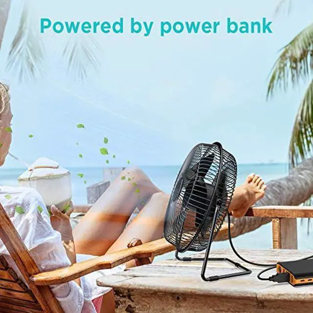 EasyAcc 9 Inch USB Desk Fan Ultra-quiet USB Powered 360deg Rotation Desktop Fan with Metal Frame, Portable Personal Cooling Fan with 2 Speed for Home Office (USB POWERED ONLY)