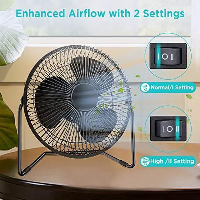 [(Table fan features)] :EasyAcc fan has 2 speeds and 360 degree rotation adjustment; this fan is only 6inch compact enough to fit on a table top or wall mount, powerful enough to help provide comfortable cooling in small to medium rooms, plus Soft silicone feet prevent slippage and help reduce fan noise.