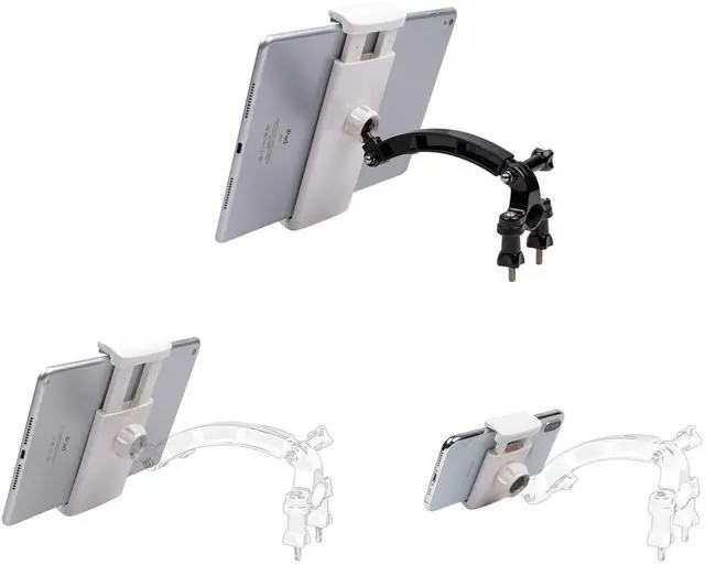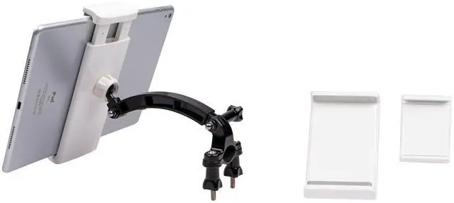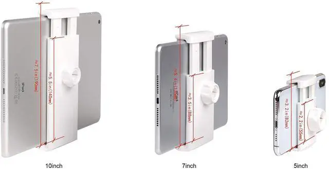 3-in-1 Airplane Yoke Mount Compatible for iPad iPhone and Similar Sized Tablet and Phone. The combo comes with mounting hardware and 3 clamps of different sizes: iPad Clamp (Clamp Open Width between 5.5 - 7.5 inches), iPad Mini Clamp (Clamp Open Width between 3.5 - 5.4 inches), and iPhone Clamp (Clamp Open Width between 2.2 - 3.2 inches). The sizes of the clamps are marked in the picture. They are all adjustable within a certain range so they will fit most of tablet/phone sizes. The clamps can also be rotated to either vertical position or horizontal position for more flexible placement of your devices. Whatever device you are using, there will be a clamp in this combo that can fit perfectly.