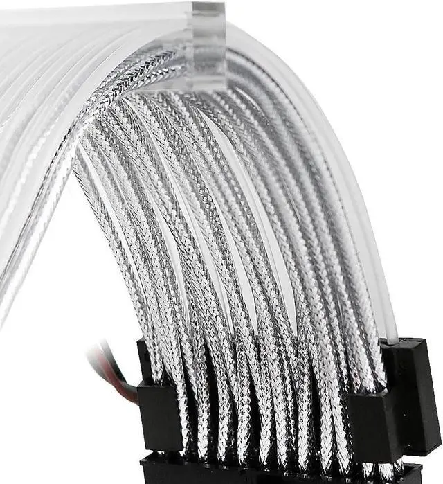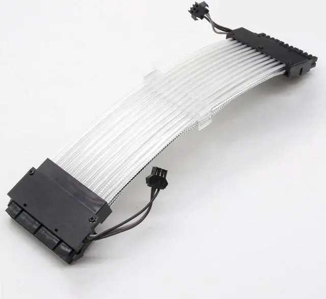* Luminous wire for 24-Pin main board, the bottom layer is carbon gray male-to-female braided extension cable, copper conductor is AWG18, and the upper layer is light-emitting device with 216x 0.5 mm fiber braided mesh.