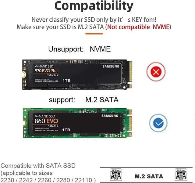 PORTABLE SSD ENCLOSURE: This external hard drive enclosure for B + M Key SATA 2242 2260 2280 22110 M.2 SSDs, Supports dual bay M.2 hard disk reads and writes clone at the same time.(Not support mSATA and NVME)