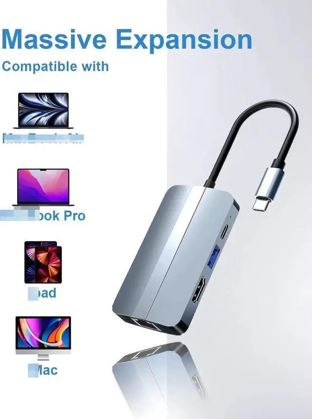 6-in-1 Massive Expansion: The USB C hubs can expand your laptop's USB C single port to 5 ports, which can meet your expansion needs for charging, data transfer, ethernet, 4K HDMI output, mouse at the same time, making your computer have more functions, work more efficiently.