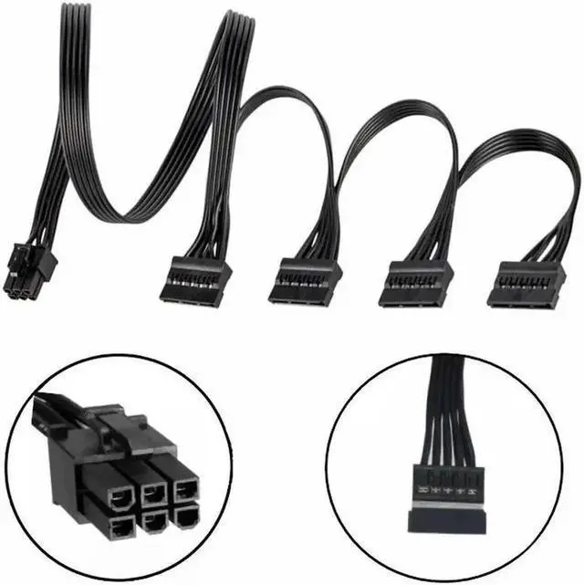 6Pin to 4 SATA Straight HDD SSD Power Cable for Seasonic CORE GX-650, GX-550, GX-500 GOLD Modular Power Unit