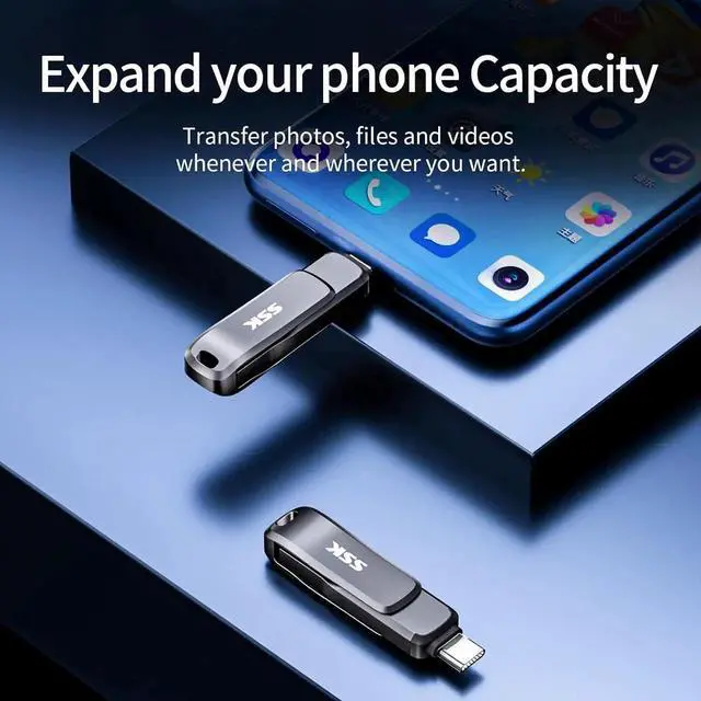 Dual USB C Drive: SSK dual drive USB C flash drive enable you to transfer files seamlessly between USB Type-C smartphone tablets and Mac and USB Type-A computers. USB C memory stick also supports OTG function meaning that files and photos on tablets ipads and mobile phones can be transferred directly by SSK small usb drive completely expanding the storage space of your deviceFaster