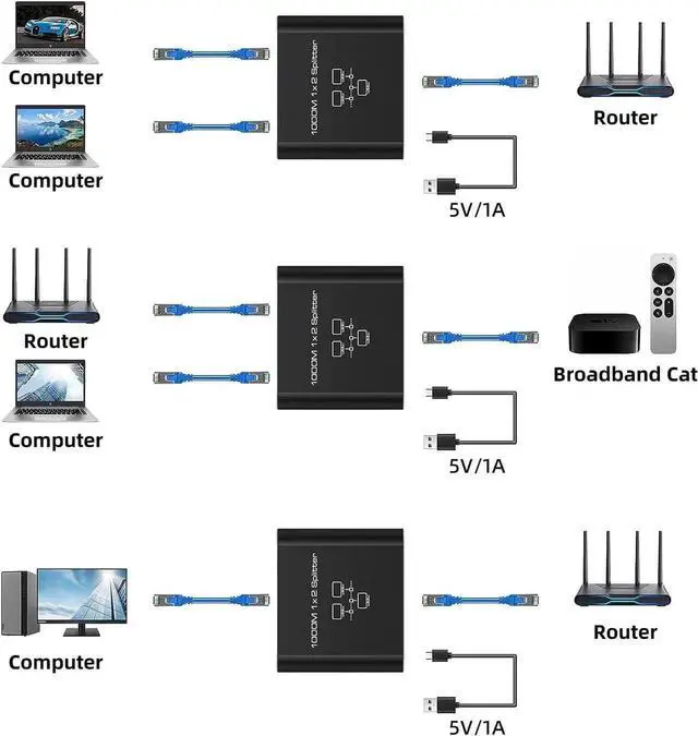 ![Alt view image 2 of 7 - Ethernet Splitter 1 to 2 High Speed, RJ45 Network 1 to 2 Port Ethernet Adapter Splitter [2 Devices Simultaneous Networking],1000Mbps Extension Connector with USB Power Cable for Cat5/5e/6/7/8 Cable](https://c1.neweggimages.com/productimage/nb640/C601S260423061FL674.jpg)