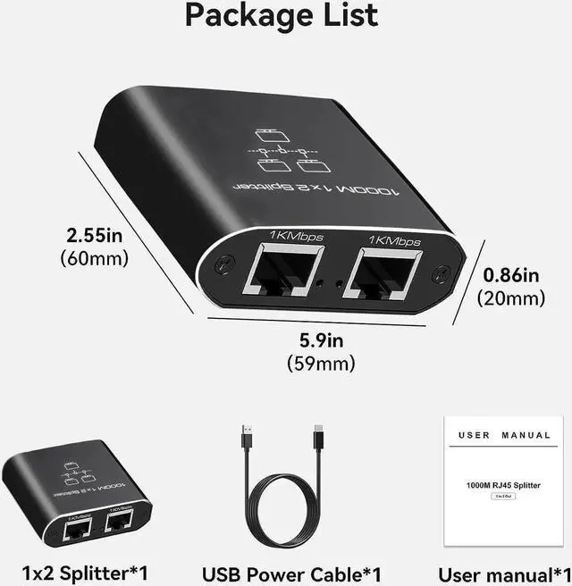 ![Alt view image 5 of 7 - Ethernet Splitter 1 to 2 High Speed, RJ45 Network 1 to 2 Port Ethernet Adapter Splitter [2 Devices Simultaneous Networking],1000Mbps Extension Connector with USB Power Cable for Cat5/5e/6/7/8 Cable](https://c1.neweggimages.com/productimage/nb640/C601S260423061FKW63.jpg)
