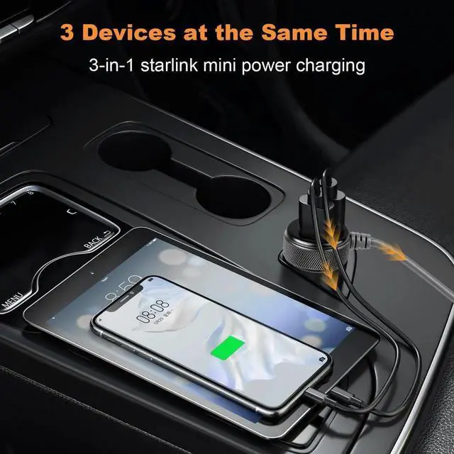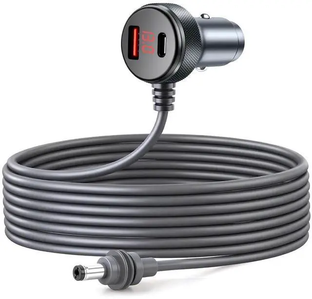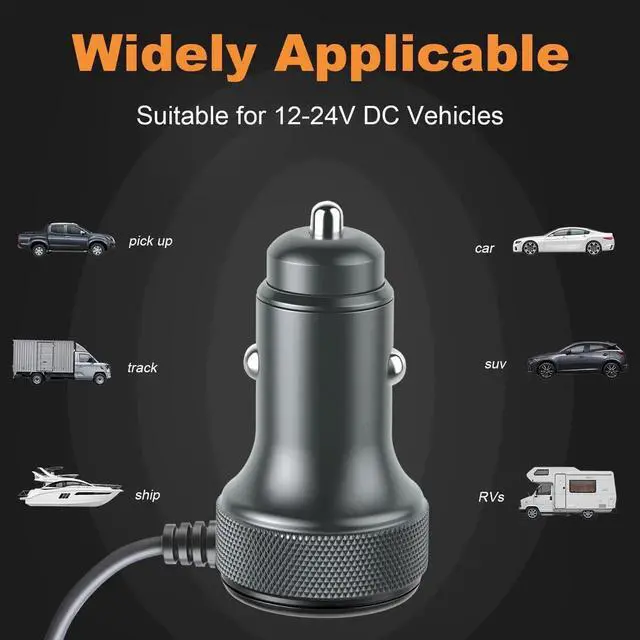 The 12V 5M/16.5FT starlink mini car adapter with voltage display is suitable for portable power stations, cars, trucks, vans, suv and also supports other charging devices with a 12V-48V cigarette lighter jack.