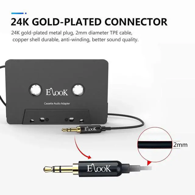 Wake up your vintage carElook cassette aux adapter connects your music library to your car tape deck. Making it easy to enjoy plentiful musics with premium sound in your vintage car!