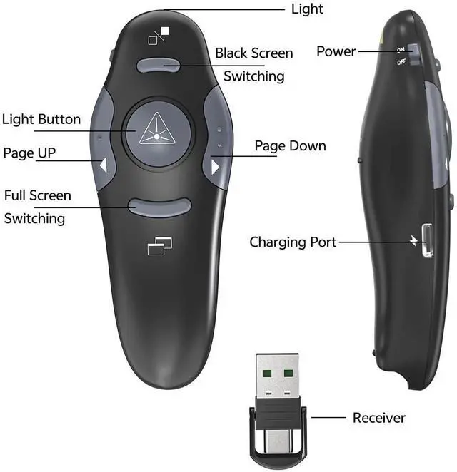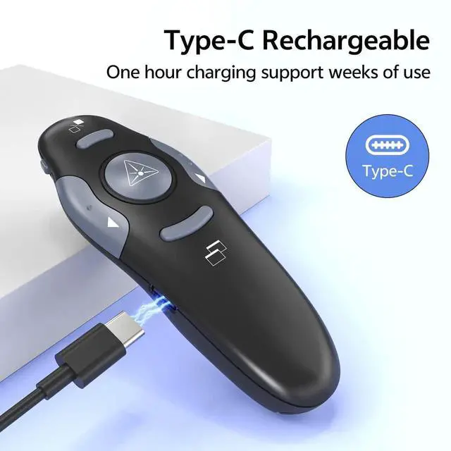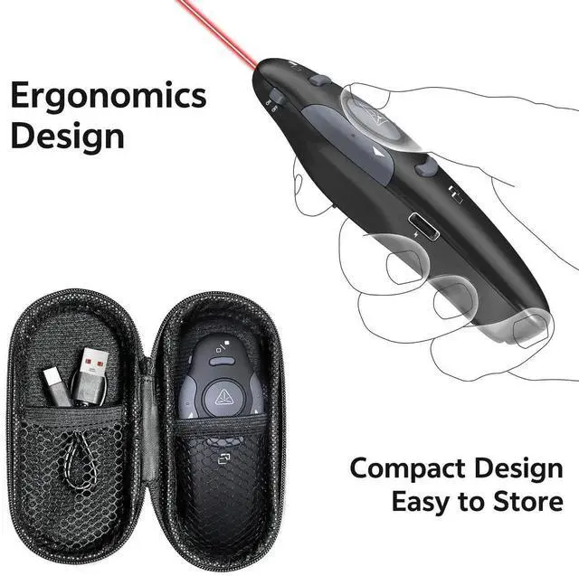 Case Storage: PowerPoint Wireless Presenter Remote USB Type C Rechargeable Red Laser Pointer Clickers for Computer Project Mac PPT Slideshow Google Slide Advancer
