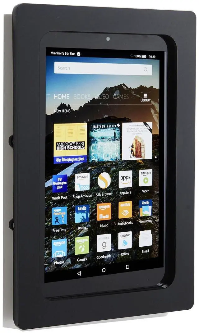 A compact Fire 7" 2015/2017/2019 enclosure for VESA 75x75 mm mounting kit. Convert your tablet into a compact Kiosk System with fully touchscreen functions! You can also use it as a Tablet POS (Point Of Sale) stand. It works with Square Credit Card reader.