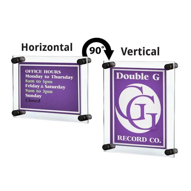 • HARDWARE INCLUDED - Each floating sign holder frame set includes 2 acrylic panels that are 3/16 thick, 4 standoff caps and hanging hardware. Note: Large format sizes: 24 x 36 and 30 x 40 include 6 standoffs and caps.