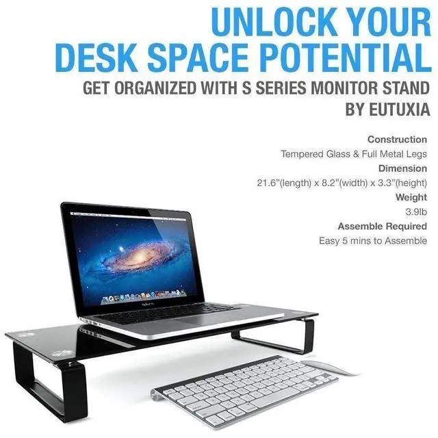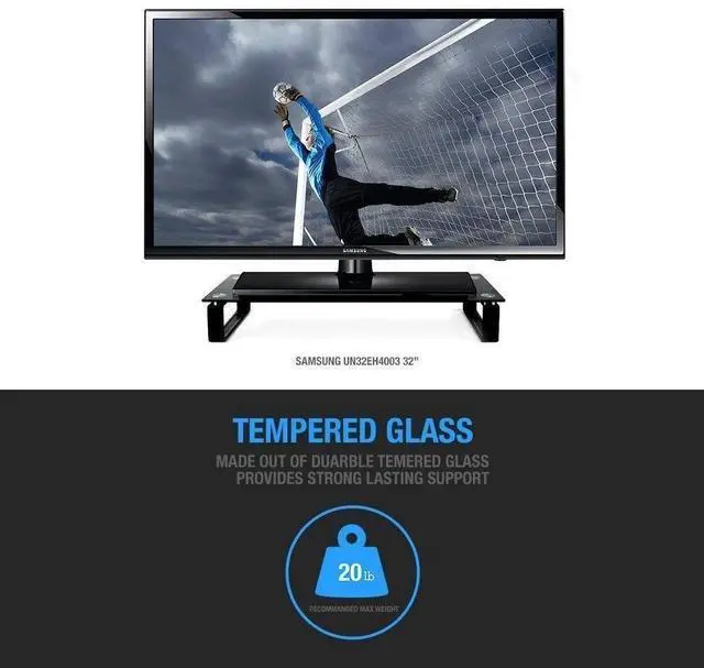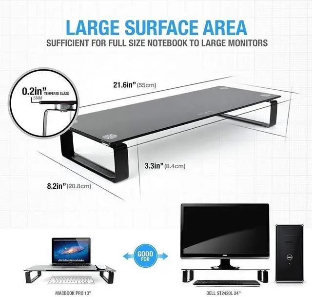 TEMPERED GLASS: (1/8" or 0.125" thick) Durable tempered glass with full metal legs provide strong support for your monitor stand needs ^^