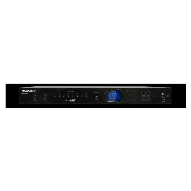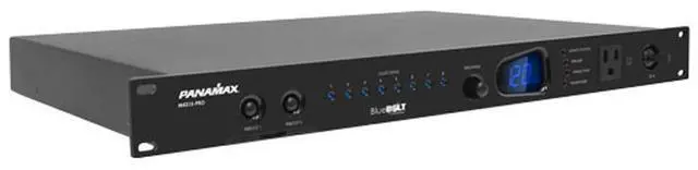 Bluebolt remote power and energy management provides real-time, cloud-based control and monitoring of the energy used by electronic devices. From easy reboots of locked-up electronics to comprehensive energy tracking and scheduled conservation, bluebolt provides a unique combination of control and monitoring directly at the electronics' Power source.;; The 15a outlet M4315-PRO power management with control & energy monitoring from Panamax has one front panel outlet & eight independent outlets that are controllable/programmable via the web with the RS-232 card (included but not installed) or the included cv-1 bluebolt card in back.;; linear filtration is provided with three isolated lift filter banks plus one isolated filter bank for high current devices.