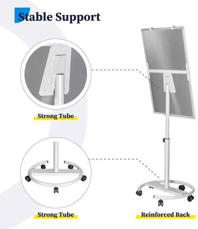 Stable & Safe: maxtek mobile white board is equipped with 5 universal wheels and rounded base for easy to move. The reinforced heavy duty base keeps the dry erase board stable while in use and there are casters with locking brakes, so the wheels can be locked into place securely ^^ Ease to