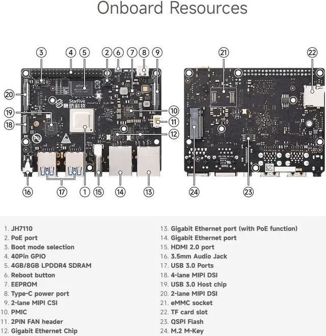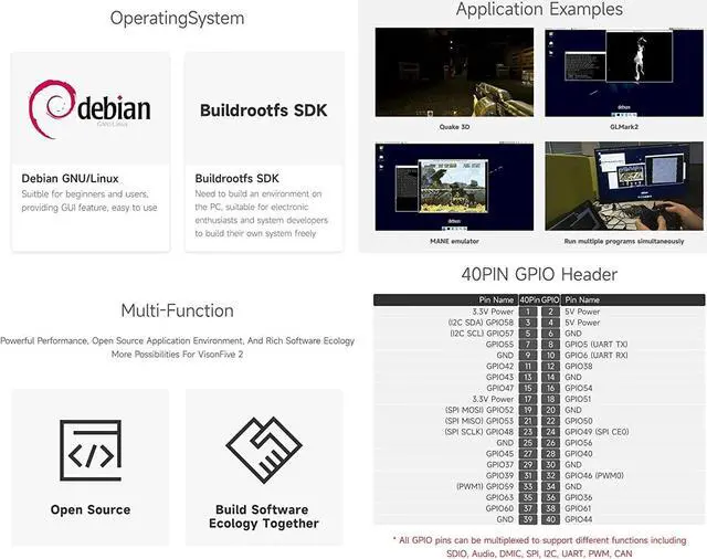 [RISC-V SBC] VisionFive2 is equipped with a quad-core 64-bit RV64GC ISA chip platform (SoC), with a working frequency up to 1.5 GHz, integrated IMG BXE-4-32 3D GPU, and supports OpenCL 3.0, OpenGL ES 3.2 and Vulkan 1.2.