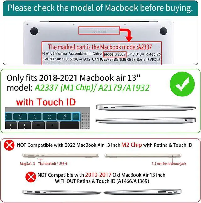 [COMPATIBLE MODEL]- Case Designed for 2018-2021 Release MacBook Air 13 Inch M1 Chip, Model A2337/A2179/A1932. Please kindly check your model number before purchase.
