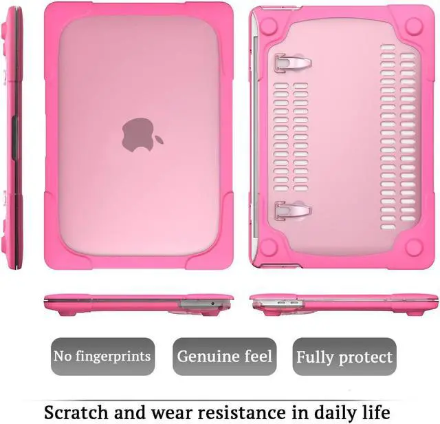Teryeefi for MacBook Air 13 inch Case M1 A2337/A2179/A1932 (2018 2019 2020 Release), Shockproof Heavy Duty Hard Shell with Fold Kickstand + Keyboard Cover + Screen Protector + USB C Adapter, Pink