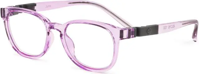 Meet June Running between round and narrow, our oval eyewear catches the best of both worlds: playing well with sharp facial features while playing up their beautiful little eyes. The perfect accessory for your little one to protect their eyes from harmful blue light emissions. Our glasses are specially designed to reduce eye strain and discomfort caused by long hours of digital screen time. The lenses of our glasses are crafted from high-quality materials that block out blue light emissions from electronic devices such as smartphones, tablets, and computers. This helps prevent headaches, eye fatigue, and disrupted sleep patterns resulting from prolonged exposure to blue light. Our glasses come in a range of fun and stylish designs perfect for children of all ages. The frames are made from durable materials that can withstand the wear and tear of daily use, and the lenses are scratch-resistant for added durability. Whether your child is doing homework, playing video games, or watching their favorite TV show, our Kids Blue Light Glasses provide a practical and stylish way to protect their eyes from the harmful effects of blue light.