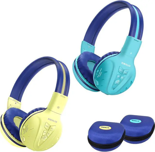 SIMOLIO 2 Pack Wireless Kids Headphones with Hard Case, Bluetooth Kids Friendly Headphone Volume Limited, Over-Ear Wireless Headsets for Girls,Boys,School,Travel(Mint,Yellow)