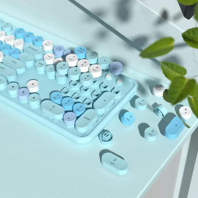 Retro Round KeyboardThe wireless keyboard features retro typewriter-style round key-caps, 104 keys full-size with numpad, and 12 multimedia hotkeys combined with the FN key to optimize your work and study efficiency