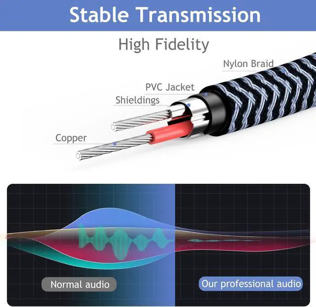 TAiSUSAN 6.35mm extension cable uses high quality tinned copper wire and gold plated connectors, transmit high quality sound, strong and sturdy. We adopt injection Molding and shielded manufacuting process to improve its durability and stability, prevent EMI/RFI interference.