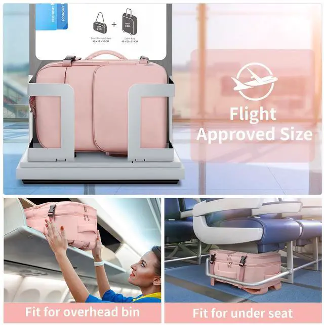 ZOMFELT Travel Backpack for Women Men, Carry On Backpack, TSA 15.6 inch Laptop Backpack Flight Approved, Personal Item Travel Bag Nurse Bag Casual Daypack for School Weekender Business Trip, Pink