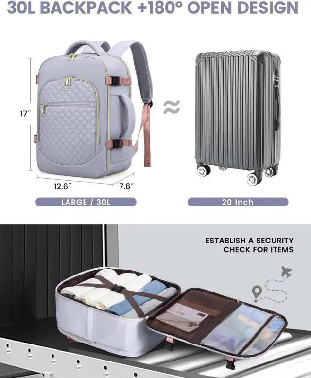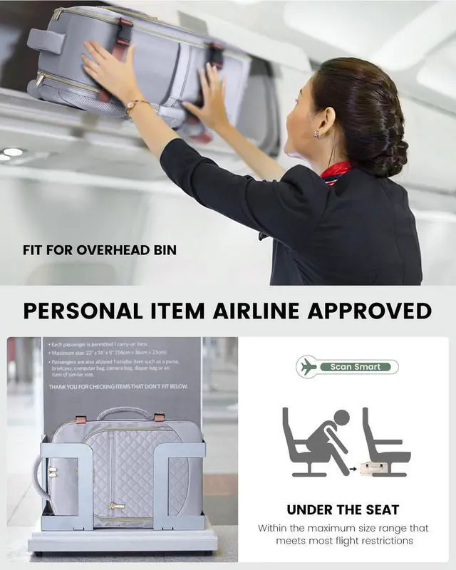 Flight ApprovedPersonal item bag fits overhead and under the seat.180 degree zipper closure helps you pass through the security check quickly. Backpack for traveling on airplane also meets airline carry-on requirements, applicable for airlines such as Easy Jet, Spirit, Jet Blue.