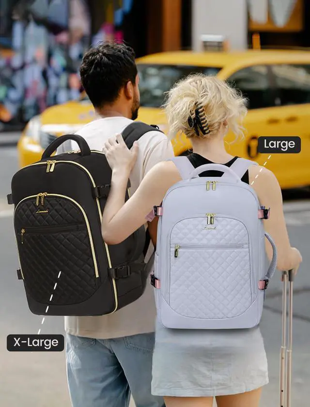 Large CapacityDimensions: Large: 12.6 inch * 7.6inch * 17inch fit for 15.6inch laptop; X-Large: 14.2inch 7.2inch 18.5inch; Light Weight 1.2Kg(2.5lb). Large backpack is great for 3-5 days trip.At the same time, travel backpack carry on is slightly waterproof.