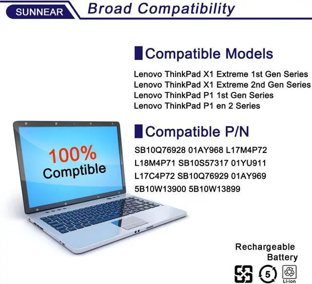 SUNNEAR L17C4P72 Laptop Battery Replacement for Lenovo ThinkPad X1 Extreme 1st Gen/2nd Gen ThinkPad P1 1st/2nd Gen Series L17M4P72 01AY968 01AY969 L18M4P71 01YU911 5B10V98091 SB10Q76929 SB10Q76928