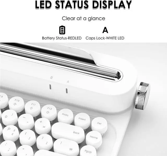 5. [Wide Compatibility] The wireless typewriter keyboard is compatible with multiple systems and devices, smartphones, tablets, laptops can be connected at the same time, compatible with for Windows, for Android or for iOS. Comes with a red Esc replacement keycap.