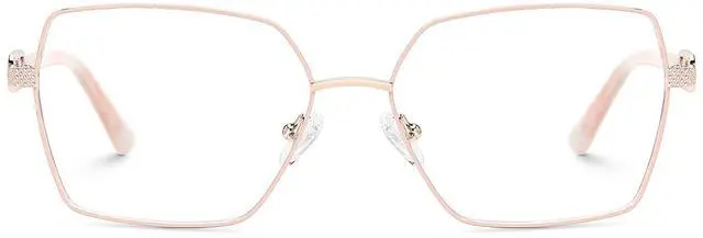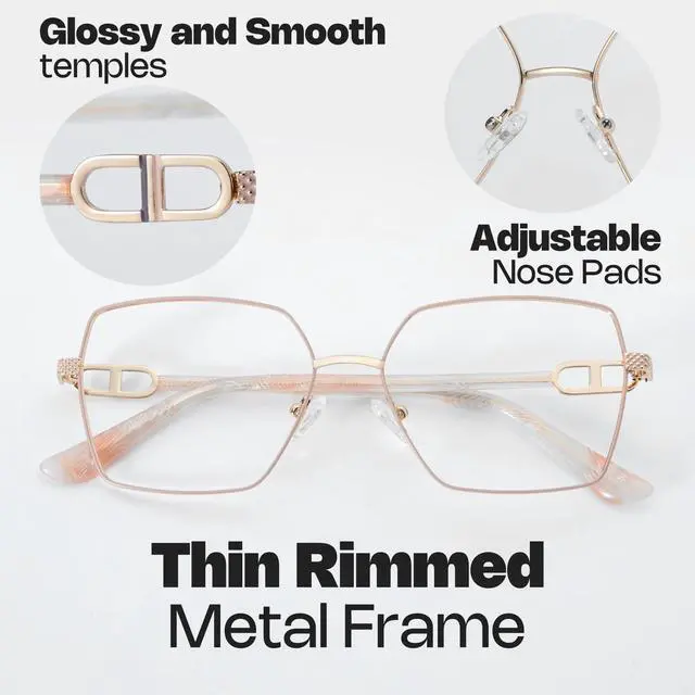 This glasses features the thin metal frame and its unique pattern of temples, and there is a metal accent on its temple, which make it simple yet stylish.