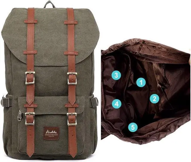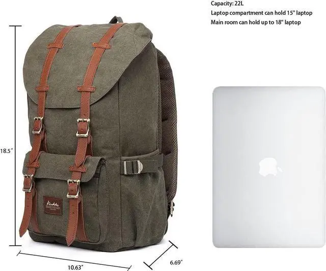 HIGH QUALITY & DURABLE MATERIAL. HIGH QUALITY Canvas makes the backpack soft and comfortable. The rucksack backpack is more high-end with the durable and eco-friendly canvavs. The contoured shoulder straps and back side comes with protective air mesh padded design, easy and comfortable to carry throughout all day. Adjustable padded shoulder straps (45-90cm), tighten and loosen easily.