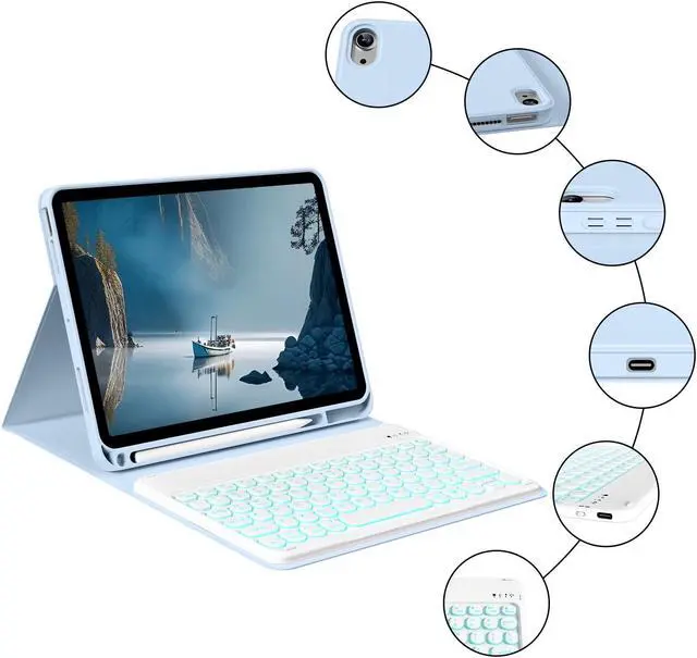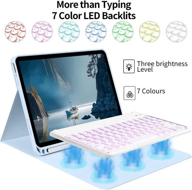 Detachable 7-Color Backlit KeyboardFeaturing a seven-color LED backlit keyboard with three adjustable brightness levels, this accessory for the iPad 11th 10th generation allows you to select your preferred hue and brightness. Enjoy a seamless and comfortable typing experience even in low-light conditions
