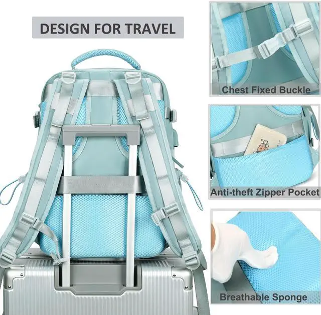 Travel Backpack for Women Men 15.6 Inch Laptop Backpacks with USB Port Carry on Backpack Flight Approved Large Back Pack College Bookbags Outdoor Sports Hiking Rucksack Casual Daypack (Green)