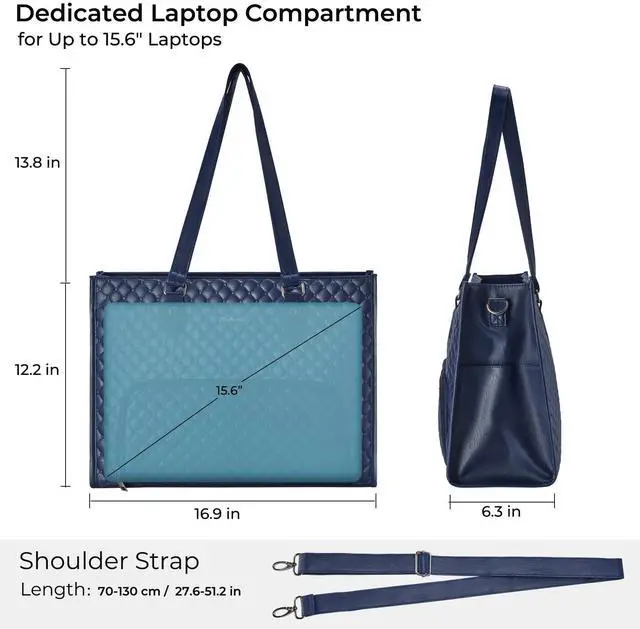 Thoughtful Organized Laptop Bag: Measuring 16.9"x6.3"x12.2" (LxWxH), this leather tote bag includes a padded sleeve for laptops up to 15.6 inches, two pen holders, and two open pockets for smaller items like phones or notebooks. Two zippered pockets offer secure storage for valuables, while the PU leather side pockets add convenience for holding water bottles or umbrellas, keeping everything organized and easily accessible.
